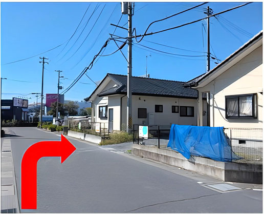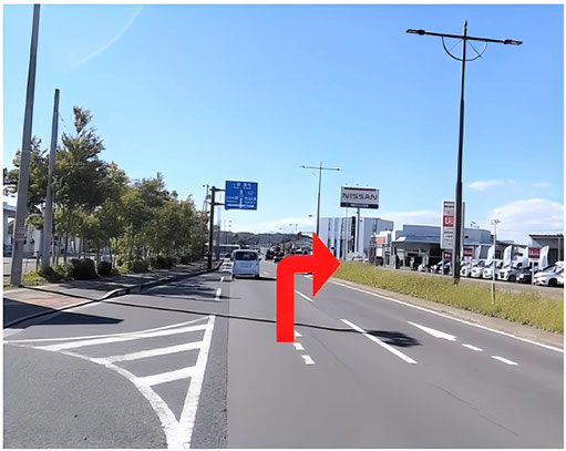 左手にイオン様、右手にNISSAN様がある信号を右折。きをつけてね~!