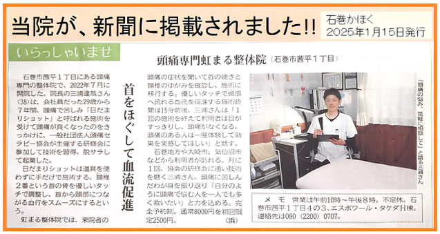 頭痛専門虹まる整体院は、三陸道の「石巻河南IC」から信号2つ曲がればすぐ着きます。